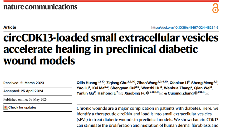 circCDK13-loaded small extracellular vesicles accelerate healing in preclinical diabetic wound models