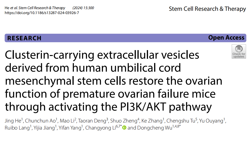 Clusterin-carrying extracellular vesicles derived from human umbilical cord mesenchymal stem cells restore the ovarian function of premature ovarian failure mice through activating the PI3K/AKT pathway
