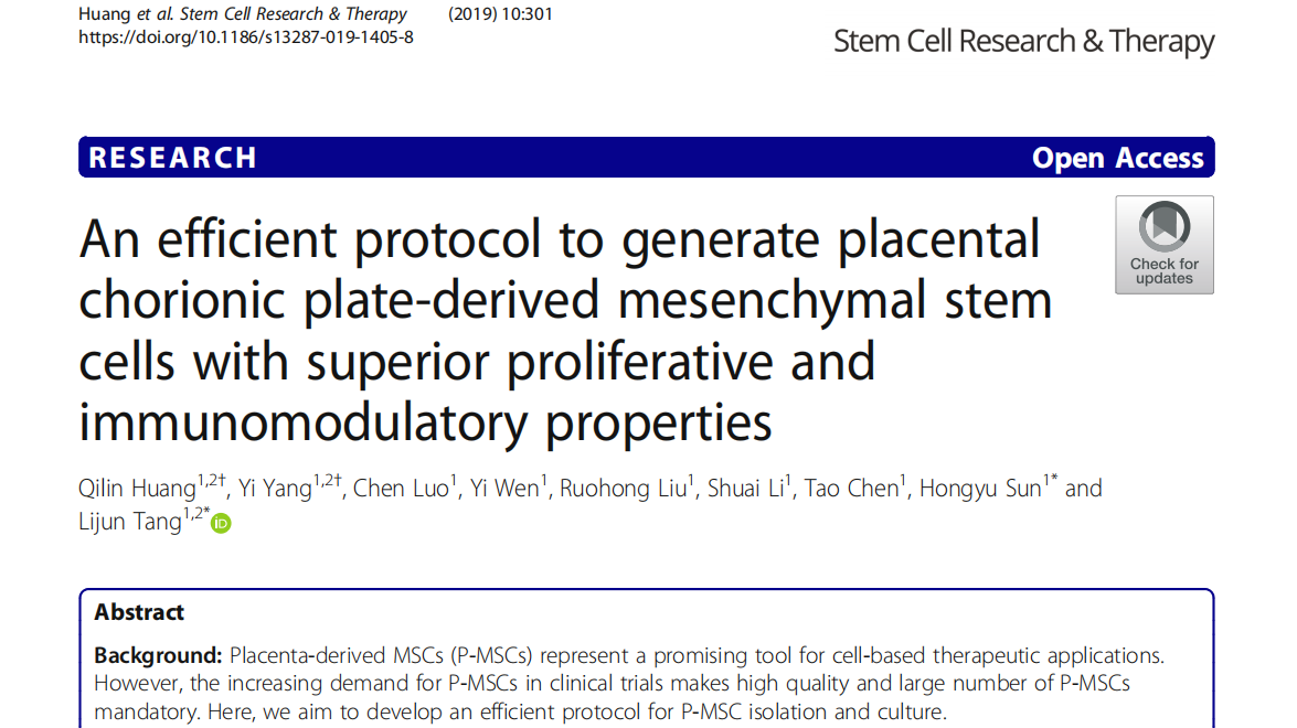 An efficient protocol to generate placental chorionic plate-derived mesenchymal stem cells with superior proliferative and immunomodulatory properties